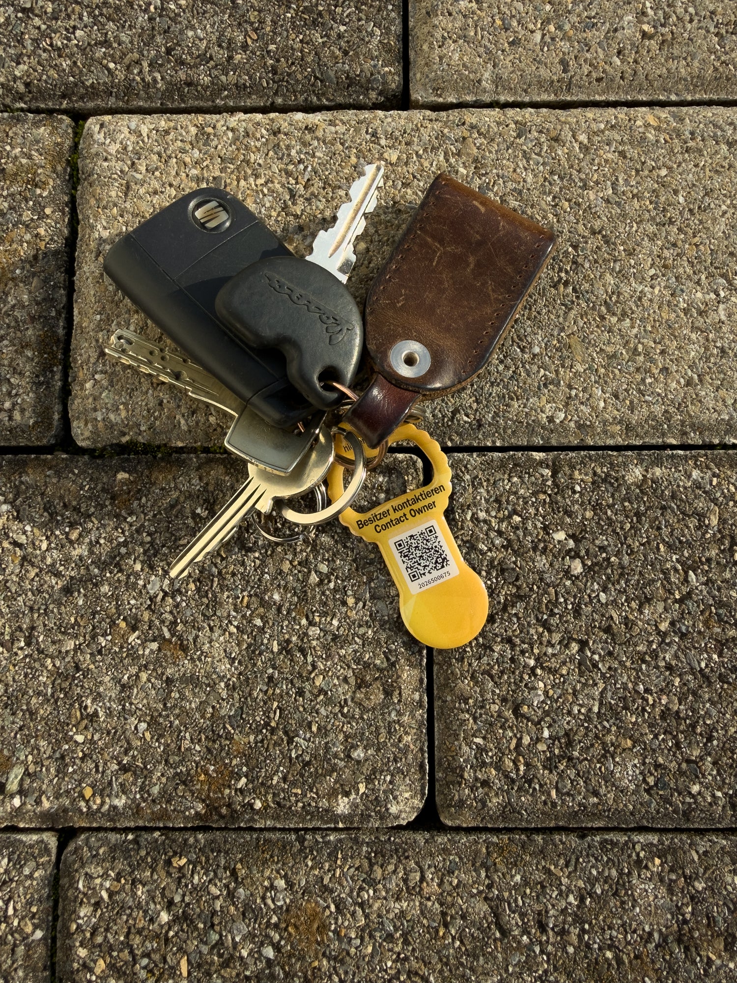Und falls er doch einmal verloren geht, kannst du über den integrierten QR-Code anonym kontaktiert werden – ohne App und ohne Preisgabe persönlicher Daten.